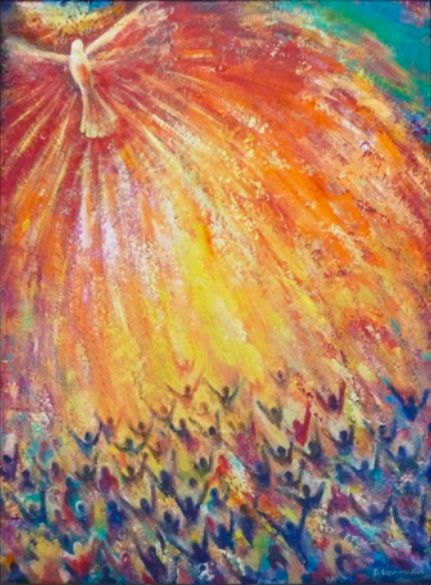 - Que el Espíritu es un viento fuerte, que resuena por todas partes y abrasa con un fuego trasformador, hasta consumir los impedimentos que nos separan a unos de otros, de tal modo, que el mensaje del evangelio pueda ser anunciado por todo el mundo y en todas las lenguas (cf. Hch 2,2-3).