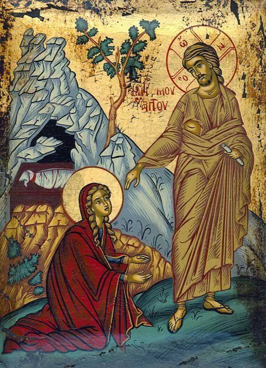 María Magdalena sufre y se entristece por la pérdida, no sabe donde han puesto a su Señor (v. 2) llora; busca y, en el encuentro inesperado, reconoce a su Señor: “¡Rabbuní!” (v. 16). De inmediato es enviada a dar testimonio: diles a mis hermanos (v. 17).