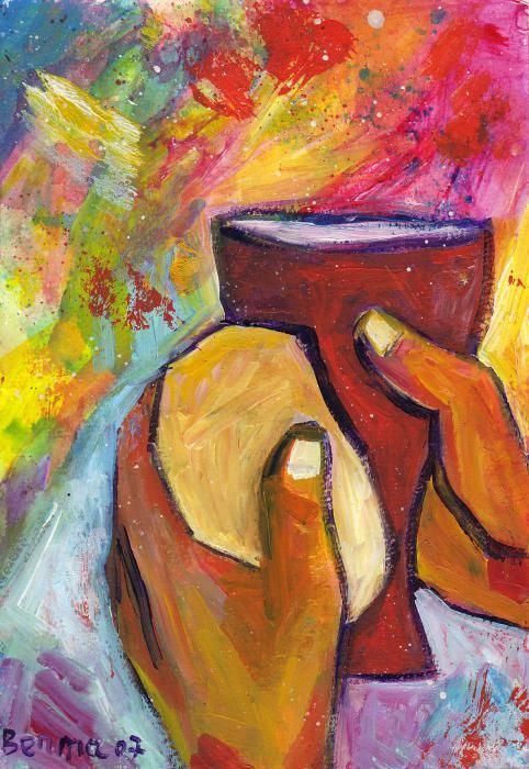 Mientras cenaban, Jesús tomó un pan, pronuncio la bendición, lo partió y se lo dio a sus discípulos, diciendo: “Tomen: esto es mi cuerpo». Y tomando en sus manos una copa de vino, pronuncio la acción de gracias, se la dio, todos bebieron y les dijo: «Esta es mi sangre, sangre de la alianza, que se derrama por todos. Yo les aseguro que no volveré a beber del fruto de la vid hasta el día en que beba el vino nuevo en el Reino de Dios».