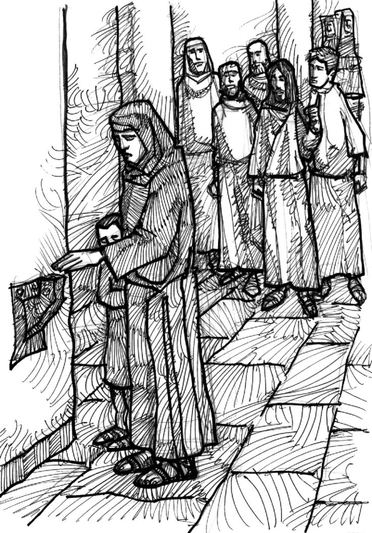 En aquel tiempo, levantando los ojos, Jesús vio a unos ricos que echaban sus donativos en las alcancías del templo. Vio también a una viuda pobre, que echaba allí dos moneditas, y dijo: «Yo les aseguro que esa pobre viuda ha dado más que todos. Porque éstos dan a Dios de lo que les sobra; pero ella, en su pobreza, ha dado todo lo que tenía para vivir».