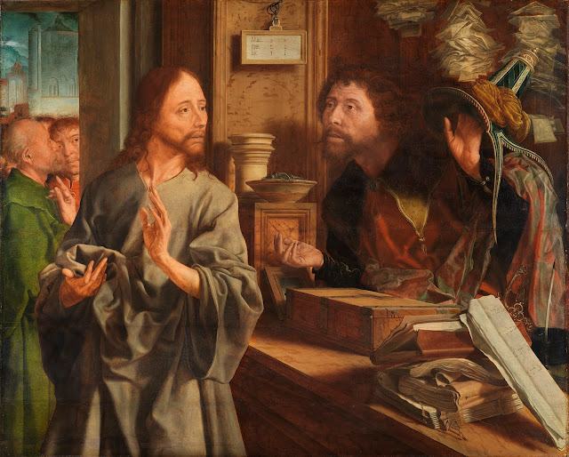 Sentados junto a la mesa de los impuestos, de los apegos, de las indecisiones; la mesa de la indiferencia, la infidelidad, el desprecio…, allí, Jesús nos encuentra y nos llama: ¡Sígueme! (v. 9).