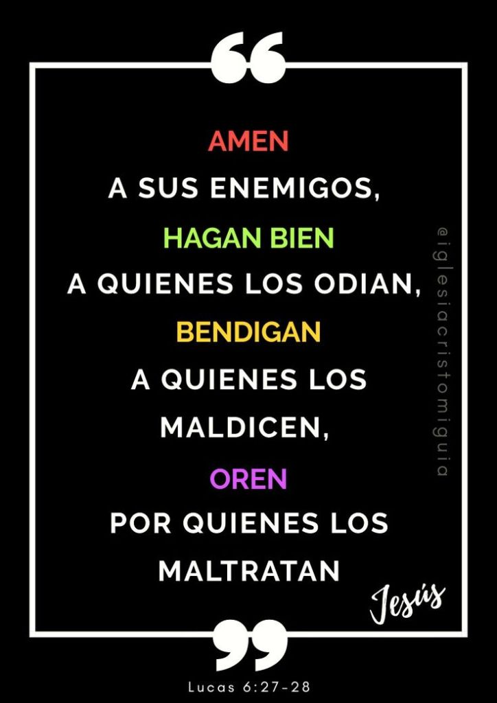 Amen a sus enemigos, hagan el bien a los que los odian y rueguen por los que los persiguen y calumnian, para que así sean hijos de su Padre celestial (v. 43)