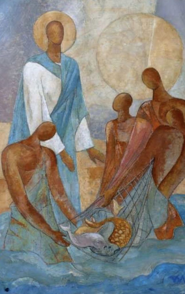 Una vez que Jesús caminaba por la ribera del mar de Galilea, vio a dos hermanos, Simón, llamado después Pedro, y Andrés, los cuales estaban echando las redes al mar, porque eran pescadores. Jesús les dijo: «Síganme y los haré pescadores de hombres». Ellos inmediatamente dejaron las redes y lo siguieron.
