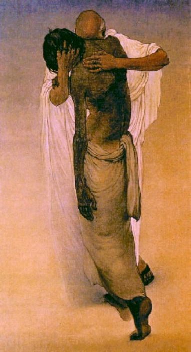 Enseguida se puso en camino hacia la casa de su padre. Estaba todavía lejos, cuando su padre lo vio y se enterneció profundamente. Corrió hacia él, y echándole los brazos al cuello, lo cubrió de besos. El muchacho le dijo: ‘Padre, he pecado contra el cielo y contra ti; ya no merezco llamarme hijo tuyo’.